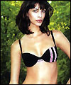 Kookai另一特色,是兩側往內集中的薄墊式罩杯剪裁,即使AB罩,照樣都有UP-UP的push-up效果,一點都不用人工硬ㄍ一ㄣ;主打廣告商品Rimini系列,以柔和粉色與天空藍交織條紋印花,上緣再包覆櫻桃紅leaver lace,洋溢天真又性感的小女人情懷,成套的半貼臀丁字褲,高明地緊貼腰臀中央,將臀修的圓翹,又不失可愛本質。