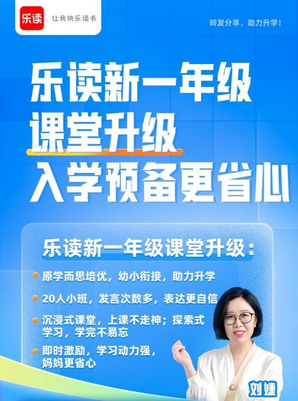 為了讓孩子更好地適應小學生的身份,樂讀對一年級小班進行了全面昇級,推出新一年級20人在線小班,入學預備更省心。