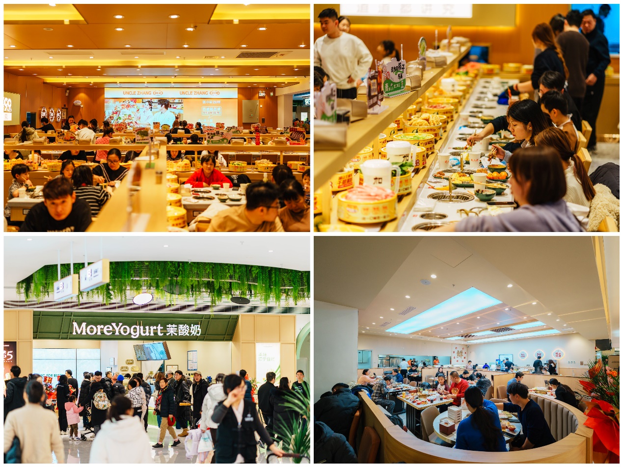 SM廣場水環區域一直是商場客流聚集的核心板塊,依托津城首家胖改永輝超市、配備天津最大IMAX影廳的萬達影城等主力店,持續著吸引全城消費目光。此次煥新開放的水環三層,建築面積約1.2萬平方米,致力於打造覆蓋全客層的“一站式”休閑社交空間,也標志著水環的繁華軸線實現了立體向上的自然生長。SM廣場的蓬勃發展,既得益於商場持續的自我煥新,也離不開與租戶品牌的雙向奔赴,此次水環三層的華彩啟幕,凝聚著雙方的精誠協作與傾注心力。開業當天,在醒獅的歡騰引領下,顧客搭乘全新飛天梯扶搖直上,直達煥然一新的水環三層空間。首批亮相的數十家優質品牌構成一幅誘人的消費圖景:從備受推崇的現炒正餐泉哥炒土菜,到人氣沸騰的網紅火鍋扶搖樹下、張小叔、鍋友;從風味地道的簡餐格朗合、野郎、旮旯兒小?骨,到口碑載道的飲品茉酸奶、九號原切牧場。此外,樊文花、菩葉、D5原捨、顏悅馨、卡古潮玩等女性服務與休閑娛樂品牌的入駐,更讓這裡超越了單純的美食聚集地,進化為融合品質餐飲、精致服務與親子趣玩的多元社交歡樂場,實現了餐飲與配套體驗的有機融合。